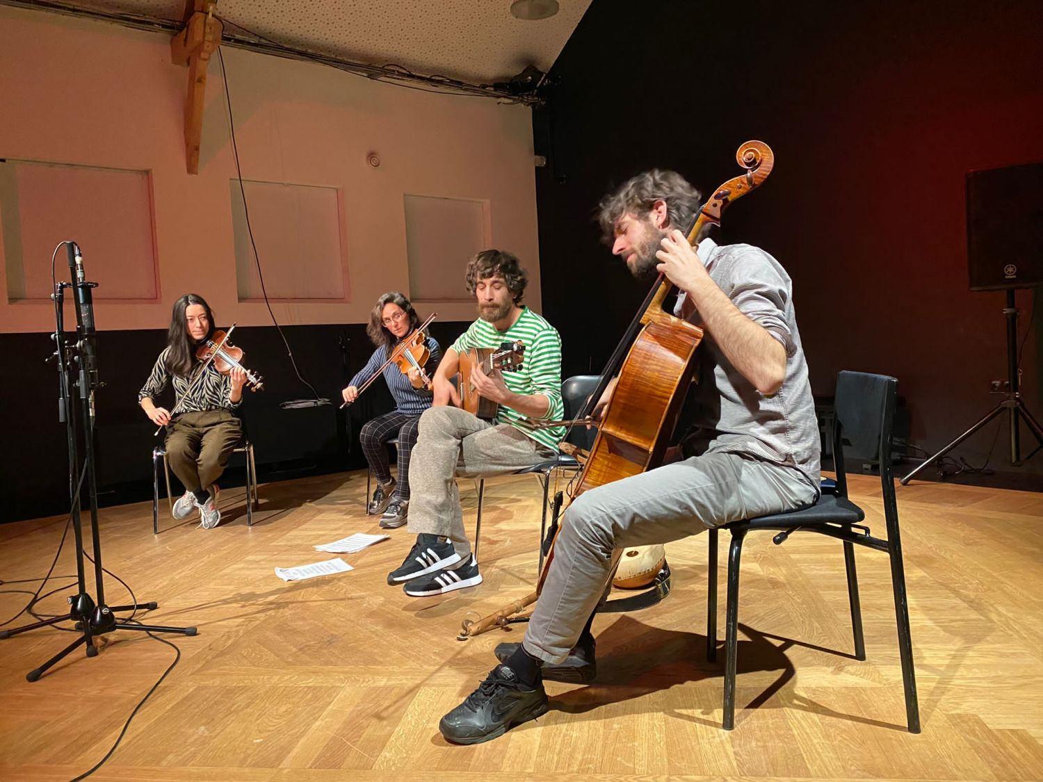 ELL SOL and STRINGS fan que l'elevació de la cançó acaroni desmesuradament la música contemporània i improvisada amb un entramat harmònic i rítmic que et no deixa indiferent. S'enfilen com un mantra de cordes sorpresa que juguen amb la gràcia i l'energia del moment desplegant un directe intens i farcit d' emoció.