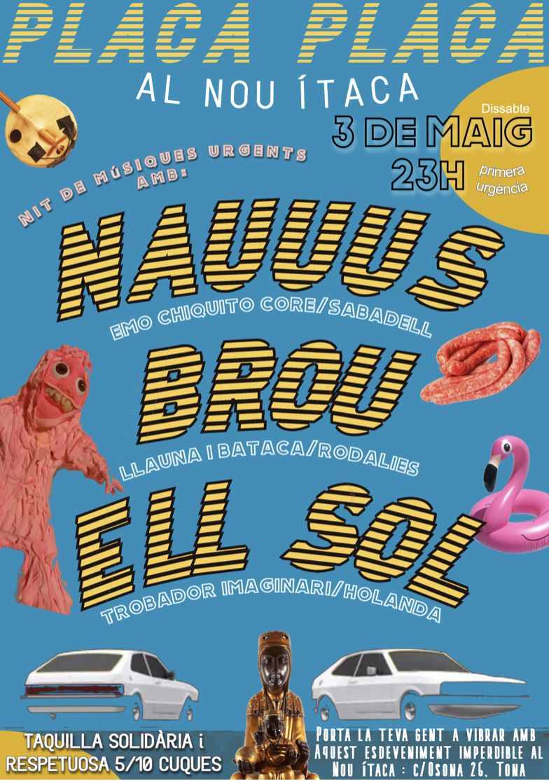 Placa Placa és el so de moltes coses excitants. A part de ser un barri d’Atenes o la distinció obligatòria per multar-te a gust, Placa Placa és la nit de músiques urgents que gratament acull el Nou Ítaca de Tona aquest maig.