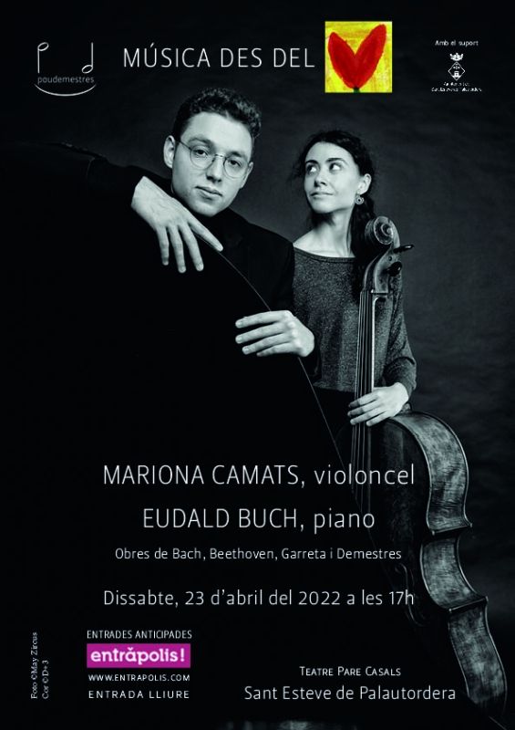 Concert amb la violoncel·lista Mariona Camats (Premi de la Crítica del Primer Palau l'any 2020) i el pianista Eudald Buch (Premi El Primer Palau 2021), en el qual ens oferiran obres de Bach, Beethoven, Garreta i Demestres.