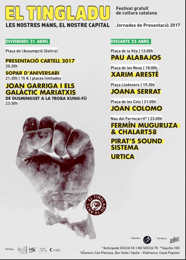Entrades a la venda a Vilanova: Can Pistraus (C/Unió, 105); Ypsilon i Bar Italia