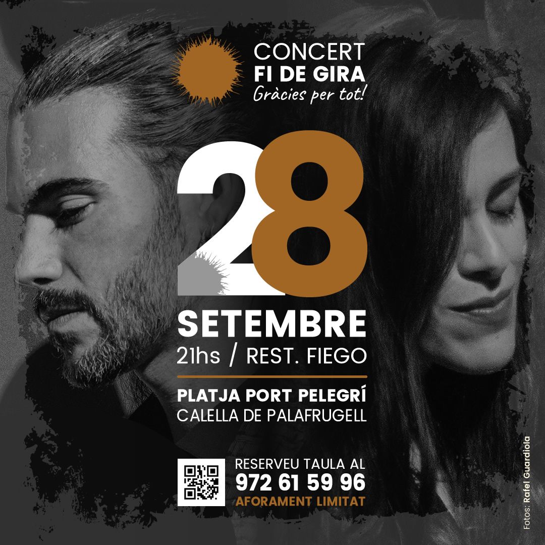 El concert es farà al Restaurant Fiego, a la mateixa Platja de Port Pelegrí (Calella de Palafrugell). Un indret que estimo molt, portat per amics i on es menja de meravella. Al piano, com sempre, m'hi acompanyarà la María Poyatos.