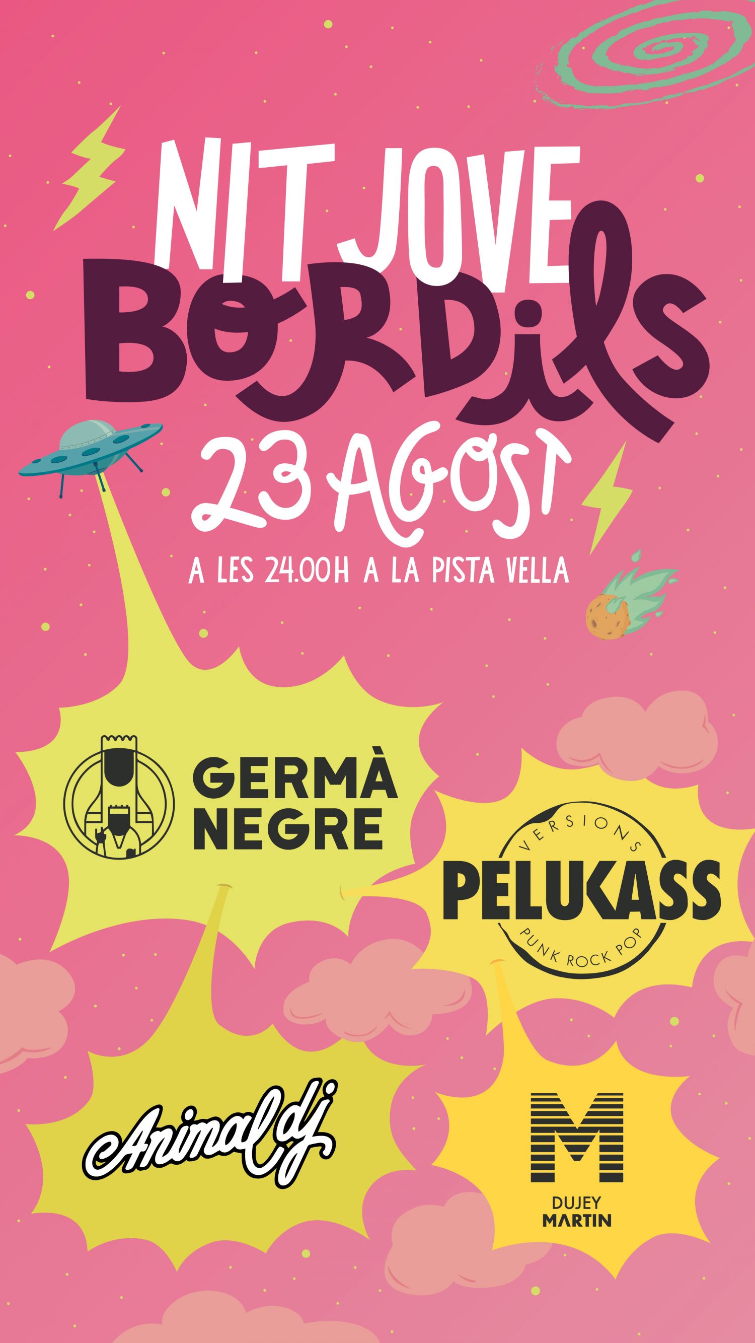 Nit Jove a partir de les 00:00 a la Pista Vella amb els grups : Germà Negre , Pelukass ,Animal Dj i Dujey Martin