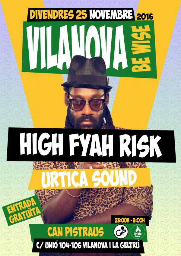 Arriba la IV Vilanova Be Wise al local de Can Pistraus de Vilanova i la Geltrú (C/ Unió 104-106). Com sempre de la ma d'Urtica Sound i aquest cop amb els vilafranquins de High Fyah Risk, els ritmes jamaicans tornen a la seva cita mensual a la capital del Garraf. Recordeu que l'entrada és gratuita i que l'horari és de 23h a 03h.