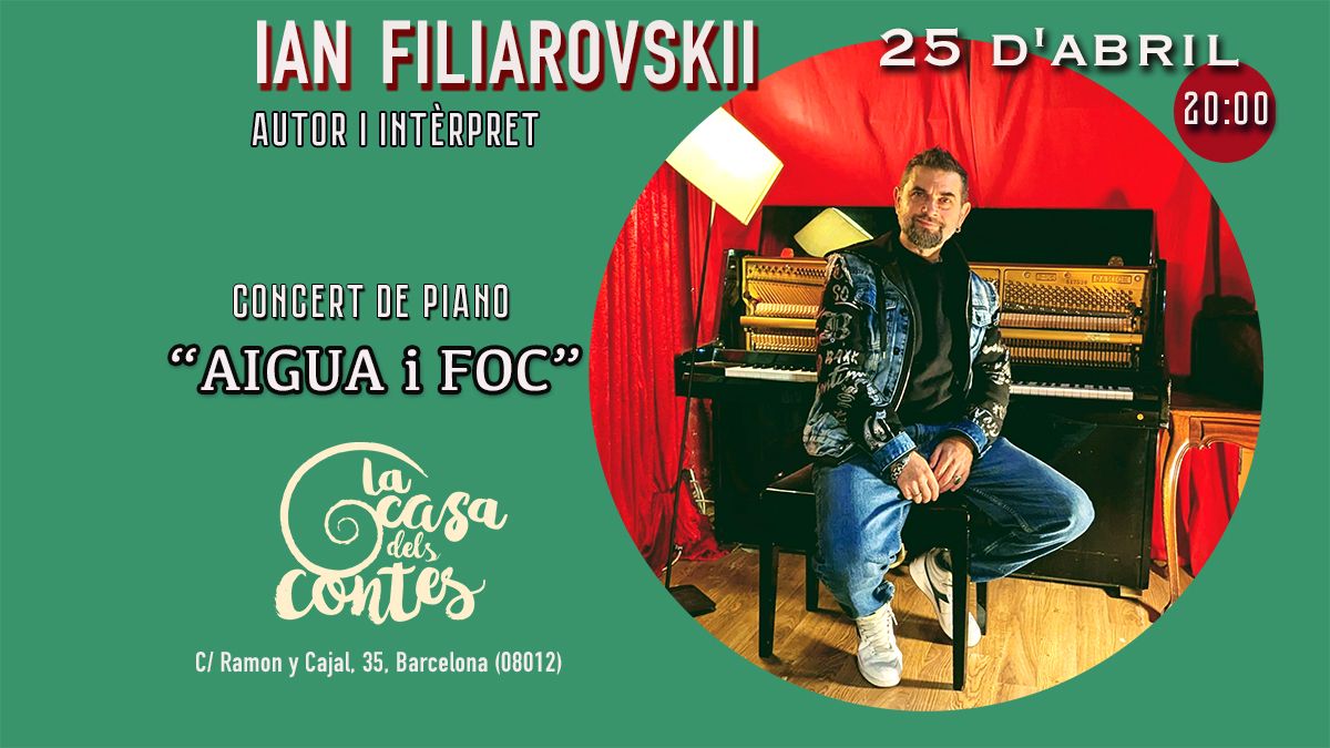 El concierto es una interpretación de piano solo de música neoclásica original, escrita entre 1993 y 2023. El estilo de Ian Filiarosvskii abarca desde el minimalismo espacial y envolvente hasta el sonido sinfónico furioso y abrasador. De ahí el nombre de este concierto “Agua y Fuego”, una explosión de sentimientos a través de dos elementos contrarios. Una de las mejores cosas de la música instrumental es la forma en que despierta la emoción e imaginación de cada oyente en función de sus propias experiencias vitales.
