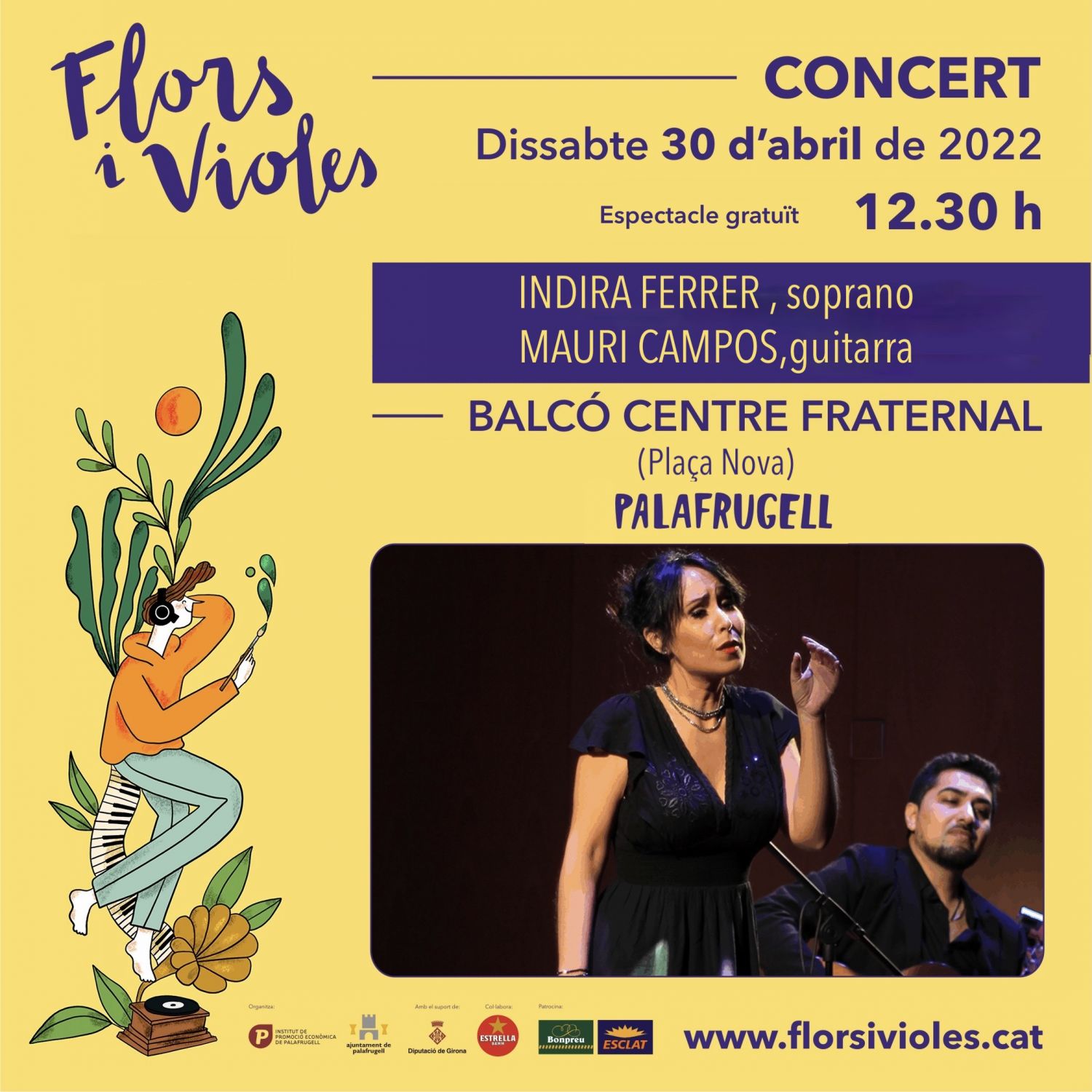 Acompanyada pel guitarrista Mauri Campos Indira Ferrer ens ofereix un concert d’Òpera, sarsuela, cançó catalana i iberoamericana.