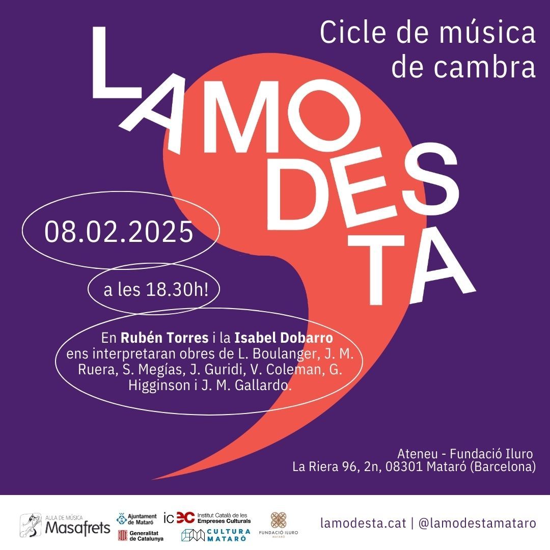 🎵 El pròxim dissabte dia 8 de febrer torna el Cicle de cambra de La Modesta en el seu 16è concert!!!!