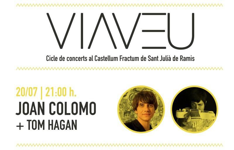 CICLE DE CONCERTS VIAVEU A SANT JULIÀ DE RAMIS, la veu més propera en un escenari privilegiat. El diumenge 20 de juliol a les 9 del vespre a l’escenari del Castellum Fractum Tom Hagan i Joan Colomo encetaran el VIAVEU 2014. Colomo, un dels cantautors més autèntics, brillants i innovadors del nostre panorama musical i un mestre de la cançó protesta, ens presentarà el seu nou disc La fília i la fòbia. Tot això al màgic escenari de la muntanya de Sant Julià de Ramis dins del programa 100 anys d’excavacions. Entrades a ticketea.com i a santjuliaderamis.cat.