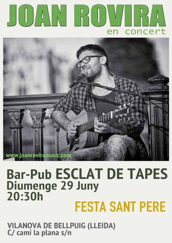 En primicia a les terres de Lleida. Joan rovira ens farà gaudir amb les seves versions de clàssics del pop com, Michael Jackson o The Police i presentant cançons del seu primer disc que sortirà publicat en les properes setmanes.