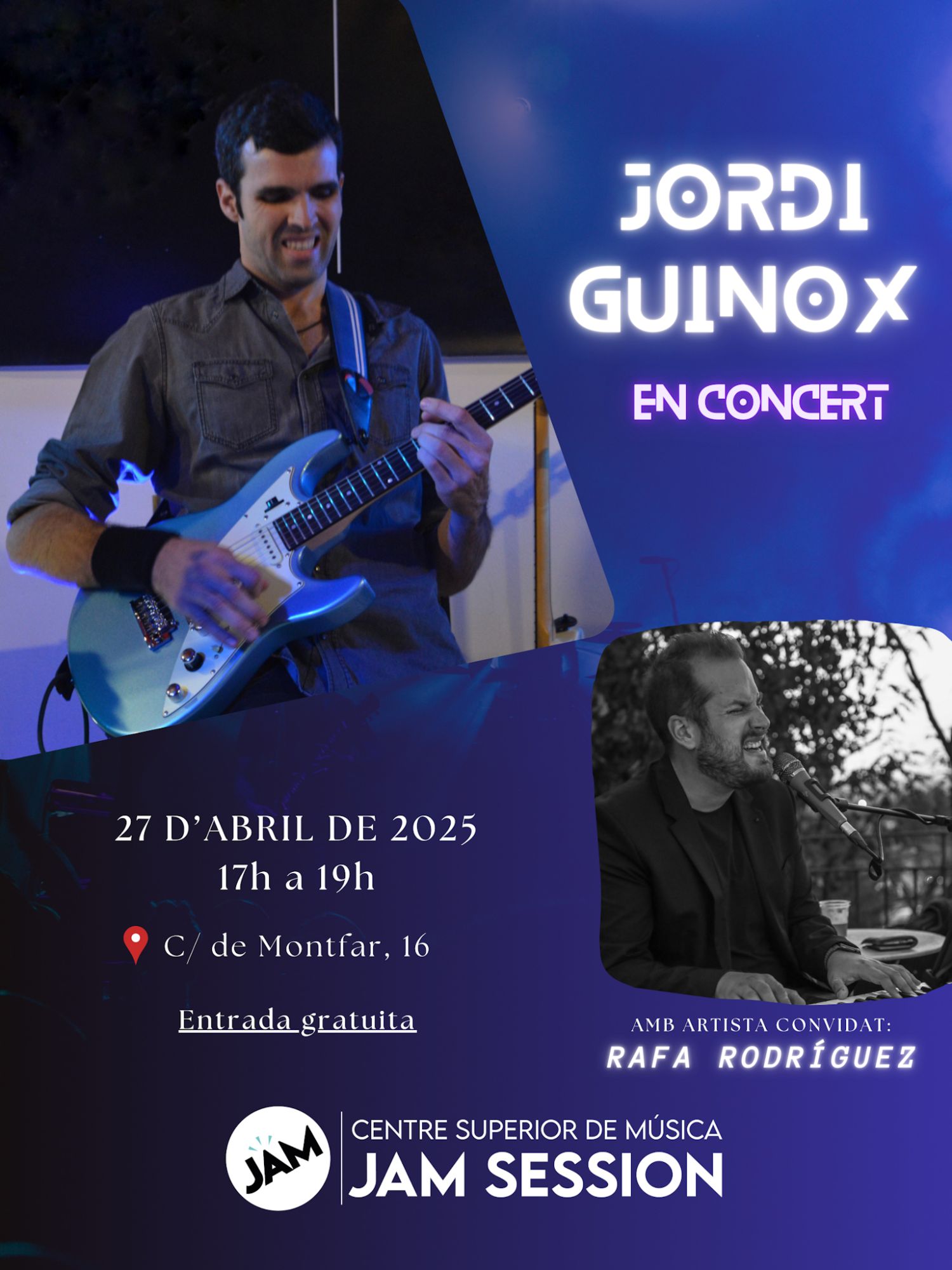 Presentaré les meves noves cançons al centre d’escola de música superior Jam Session. Com artista convidat, m’acompanyarà el meu amic Rafa Rodríguez, on també presentarà temes propis. No hi falteu!!!