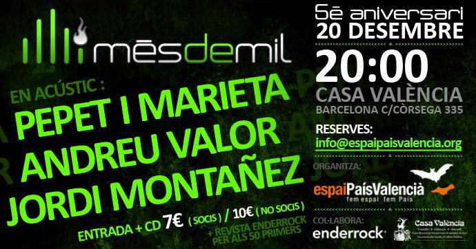 L'entrada, que costarà 7€ per a socis de l'Espai del País Valencià i 10€ per a no socis, inclou un CD recopilatori dels 5 anys de Mésdemil on han participat 19 grups!