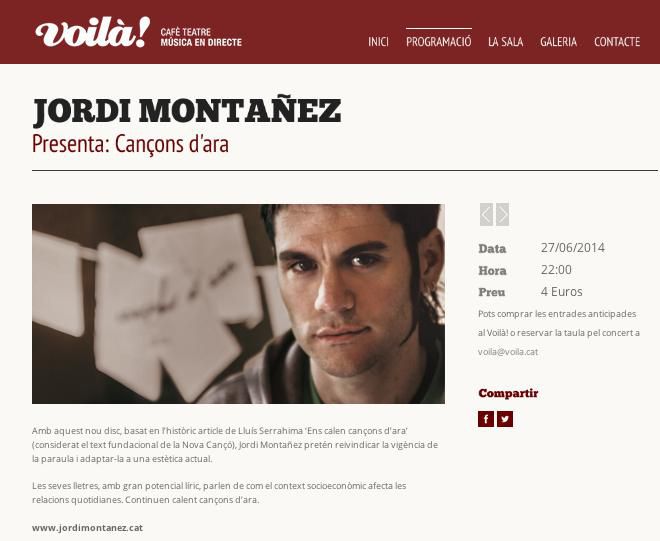El cantautor Jordi Montañez actua al Voilà Cafè Teatre de Manresa.
