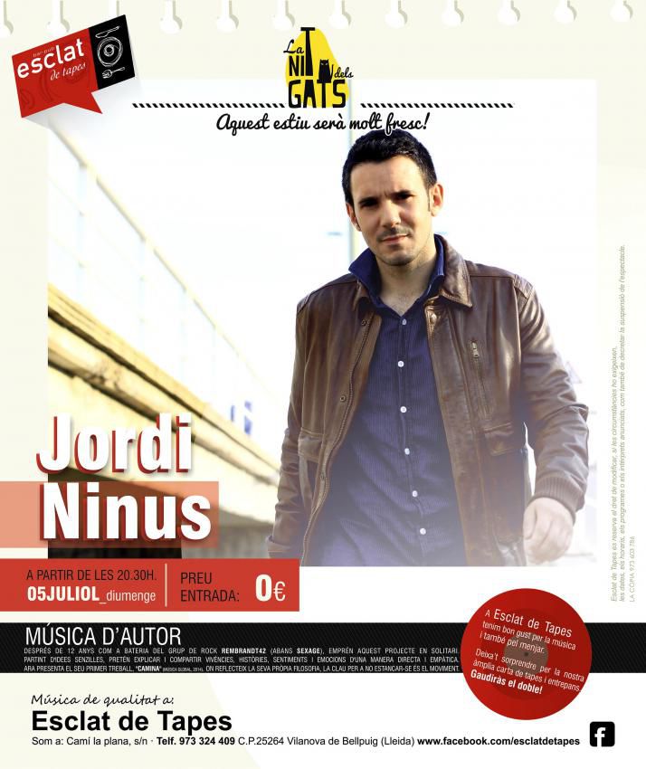 I aquesta setmana, a l'Esclat de Tapes, ens visita un dels referents de la nova fornada de la música d'autor. Músic revelació del 2014, el seu primer treball, "Camina", ha arribat a les fases finals per al millor disc de l'any en català recollint bones crítiques i reconeixements per diferents certamens. Estem parlant de JORDI NINUS que, després de 12 anys formant part de Rembrandt42, presentarà el seu projecte en solitari amb el seu 1r disc "CAMINA". No us el perdeu. Esclat de Tapes on la música de qualitat i el bon menjar es fusionen.
