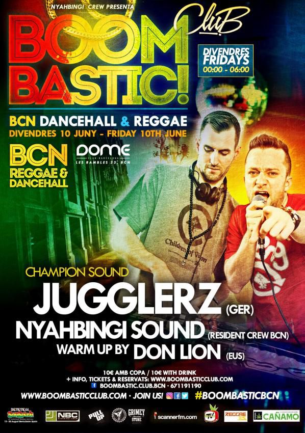 Considerado el mejor sound europeo y uno de los mejores del mundo, los alemanes Jugglerz aterrizan por primera vez en Barcelona con su frenético show de dancehall y reggae. Mad night! Les acompañarán los residentes Nyahbingi Sound. Warm up by Don Lion. Todos los viernes de 00h a 06h el mejor reggae y dancehall en el centro de Barcelona!