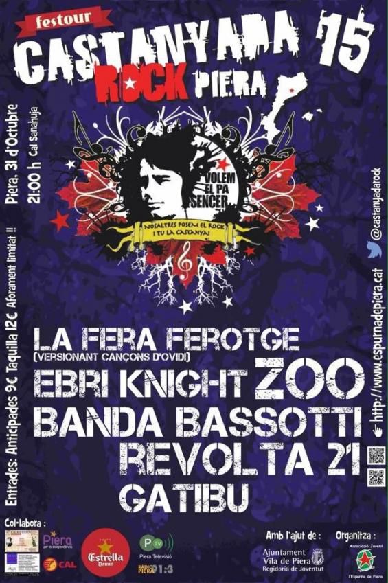 Edició dotzena del Festival de tardor de música rock dels Països Catalans ! Un any més ens veurem a Piera com cada 31 d'Octubre a la nau de Cal Sanahuja per celebrar la festa de la castanyada i reivindicar la música reivindicativa de casa nostra i la promoció de grups emergents dels Països Catalans. Aquest 2015 volem retre un homenatge al gran Ovidi Montllor que ens va deixar ara farà 20 anys i tindrem un record ben especial pel cantautor d'Alcoi que tant ha inspirat a músics actuals
