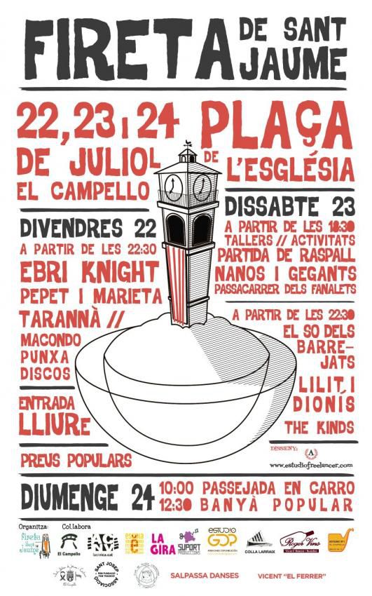 EL DISSABTE 23 DE JULIOL A PARTIR DE LES 18:30H TINDREM A LA FIRETA DE SANT JAUME PARTIDA DE RASPALL, TALLERS , NANOS I GEGANTS,PASACARRERS DE FANALETS I CONCERT AMB ENTRADA LLIURE.