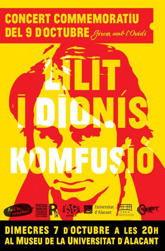 Celebrem el 9 d'octubre a la Universitat d'Alacant amb Lilit i Dionís i Komfusió.