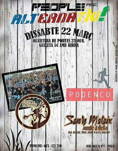La sala People Club de Pego presenta segon concert de People Alternatiu, consolidant així la seua proposta de música en directe. Amb un preu de 5 euros (incloent cervessa) la nit del dia 22 a partir de les 23:00 sonaran LILIT I DIONÍS i PODENCO tancant les actuacions el dj SANTY MATAIX.