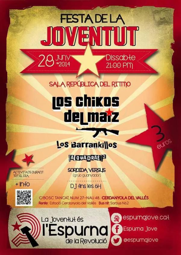 Festa de la Juventut a la sala República del Ritmo amb Los Chikos del Maíz, Los Barrankillos, Sórdida Versus i Al Quadrat! Entrada només 3€