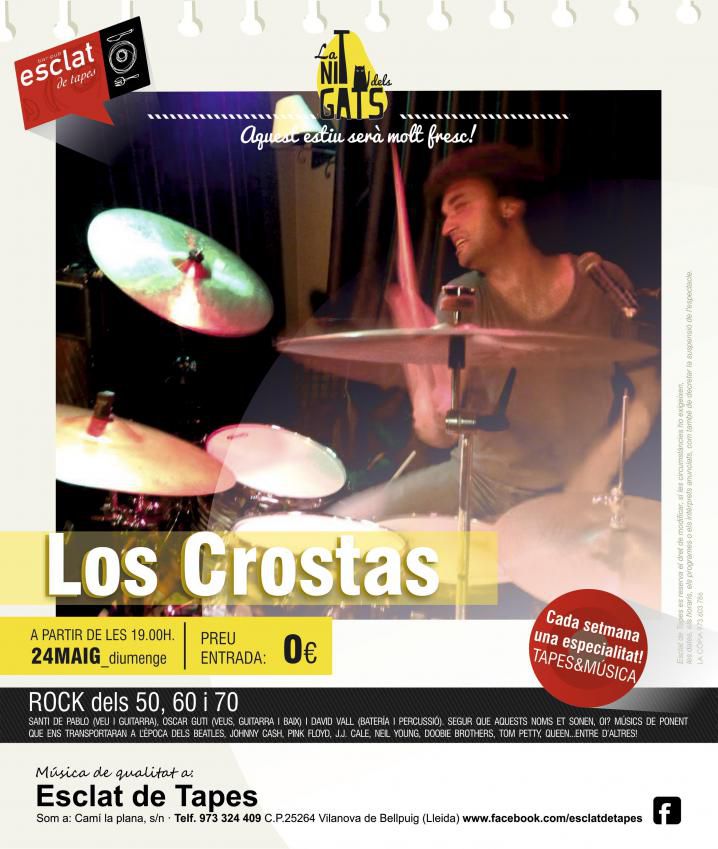 Santi de Pablo (veu i guitarra), Oscar Guti (veus, guitarra i baix) i David Vall (batería i percussió). Ells són Los Crostas, un trio de les terres de ponent, compost per músics experimentats, que interpreten una selecció de clàssics del rock dels anys 50, 60 i 70 en format acústic. En el seu repertori no pot faltar clàssics de Beatles, Johnny Cash, Pink Floyd, J.J. Cale, Neil Young, Doobie Brothers, Tom Petty, Queen.. i molts altres clàssics que, ben segur que coneixereu.