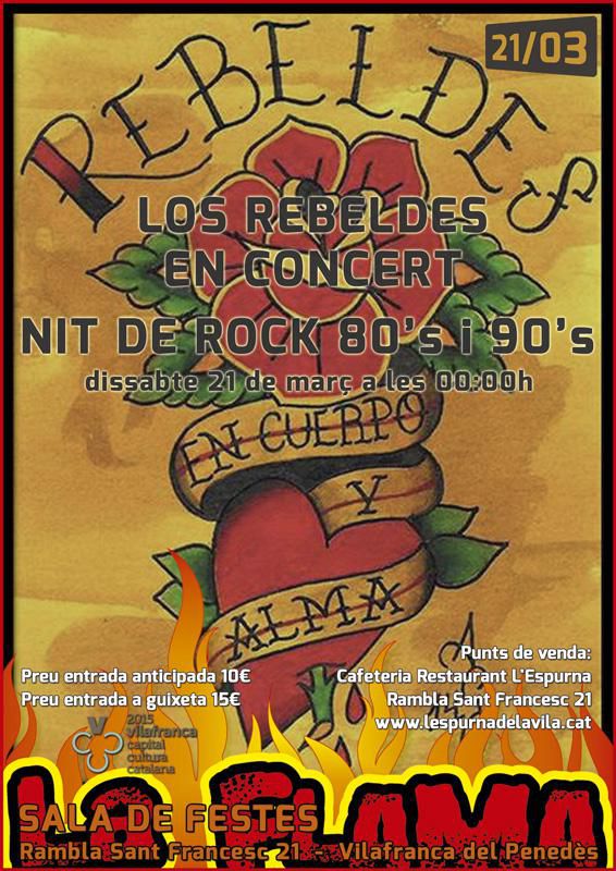 Nit de Rock dels 80's i 90's amb Los Rebeldes en concert a La Flama