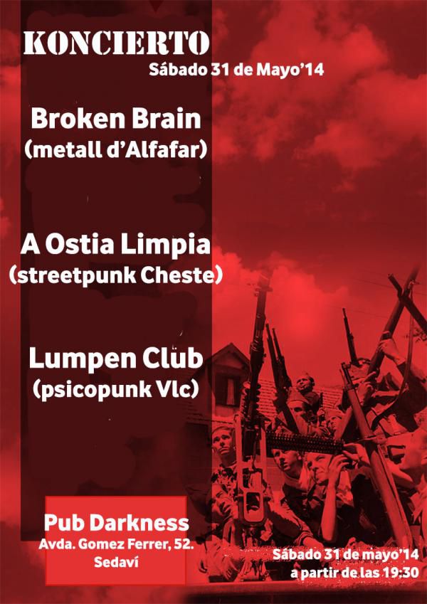 Vesprada-nit de punk, oi i metall. Finalitza prompte (vora les 00:00). Es de baes! Puntualitat.