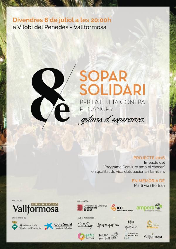 Aquest divendres, @Vallformosa celebra el 8è sopar solidari per recaptar fons per a la lluita contra el càncer