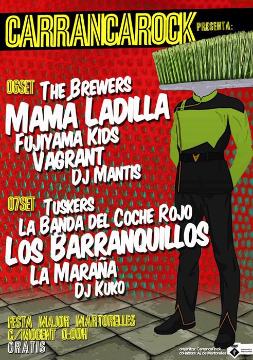 L'Associació de Músics CarrancaRock presenta en concert a: Mamá Ladilla, Los Barranquillos, Fujiyama Kids, La Maraña, La Banda del Coche Rojo, Vagrant, The Brewers, Tuskers, Dj Kuko, Dj Mantis...