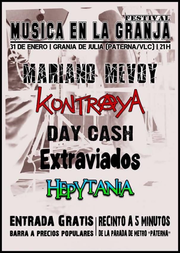 Festival musica en la granja! A la granja julia de paterna, a 5 minuts de l'estació de metro `paterna´. Entrada gratuíta i barra a preus populars!