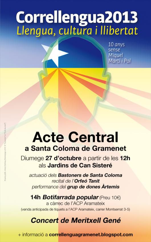 El diumenge 27 d'octubre es farà l'acte central del Correllengua 2013, una iniciativa que enguany es dedica a la figura de Miquel Martí i Pol i que porta a la ciutat una programació d'actes per la defensa de la llengua i la cultura catalanes.