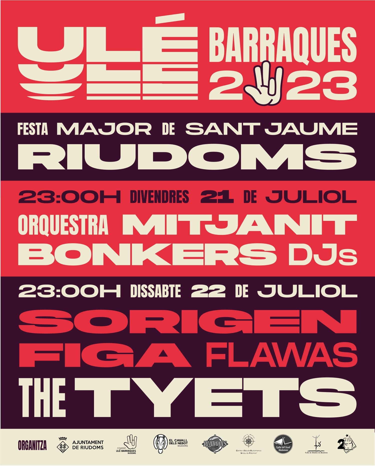 Les Ulé Barraques Riudoms 2023 després de 15 edicions, són a punt de tornar a fer vibrar la música en directe amb un cartell excepcional. La Festa Major de Sant Jaume que se celebrarà el 21 i 22 de juliol, té ja confirmada la presencia de The Tyets, una de les bandes que lidera la escena musical catalana.