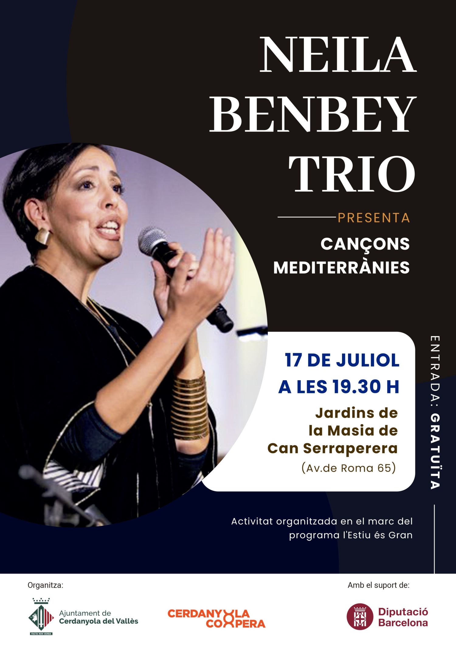 En aquest concert, la cantant algeriana Neila Benbey farà un recorregut pel Mediterrani amb cançons de Tunísia, Egipte, Líban, Espanya, França i sobretot Algèria. Després de tot el que està succeint aquest últims anys, i davant de la injustícia de la guerra i dels trasllat forçats, dels quals Neila Benbey és un un exemple, farem memòria a través de cançons de diferents pobles del mediterrani, cantant per l’entesa entre cultures, i per la riquesa de la diversitat.