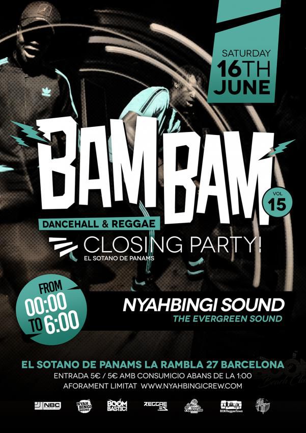 El proper dissabte 16 de juny es despedeix la temporada de les Bam Bam Basement Parties! Vine a ballar a ritme del millor dancehall i reggae fins les 06h de la matinada de la mà de Nyahbingi Sound! Entrada només 5 euros o 5 euros amb consumició si arribes abans de la 1h o la compres de forma anticipada.