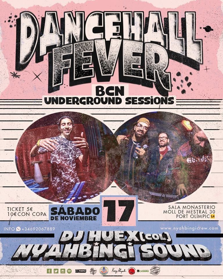 Dancehall Fever este sábado 17 de noviembre con Nyahbingi Sound y el colombiano DJ HUEX a los controles! Ven a mover tu bootty a ritmo del mejor dancehall de la ciudad! Os esperamos de 01h a 06h en la Sala Monasterio del Port Olímpic de Barcelona!