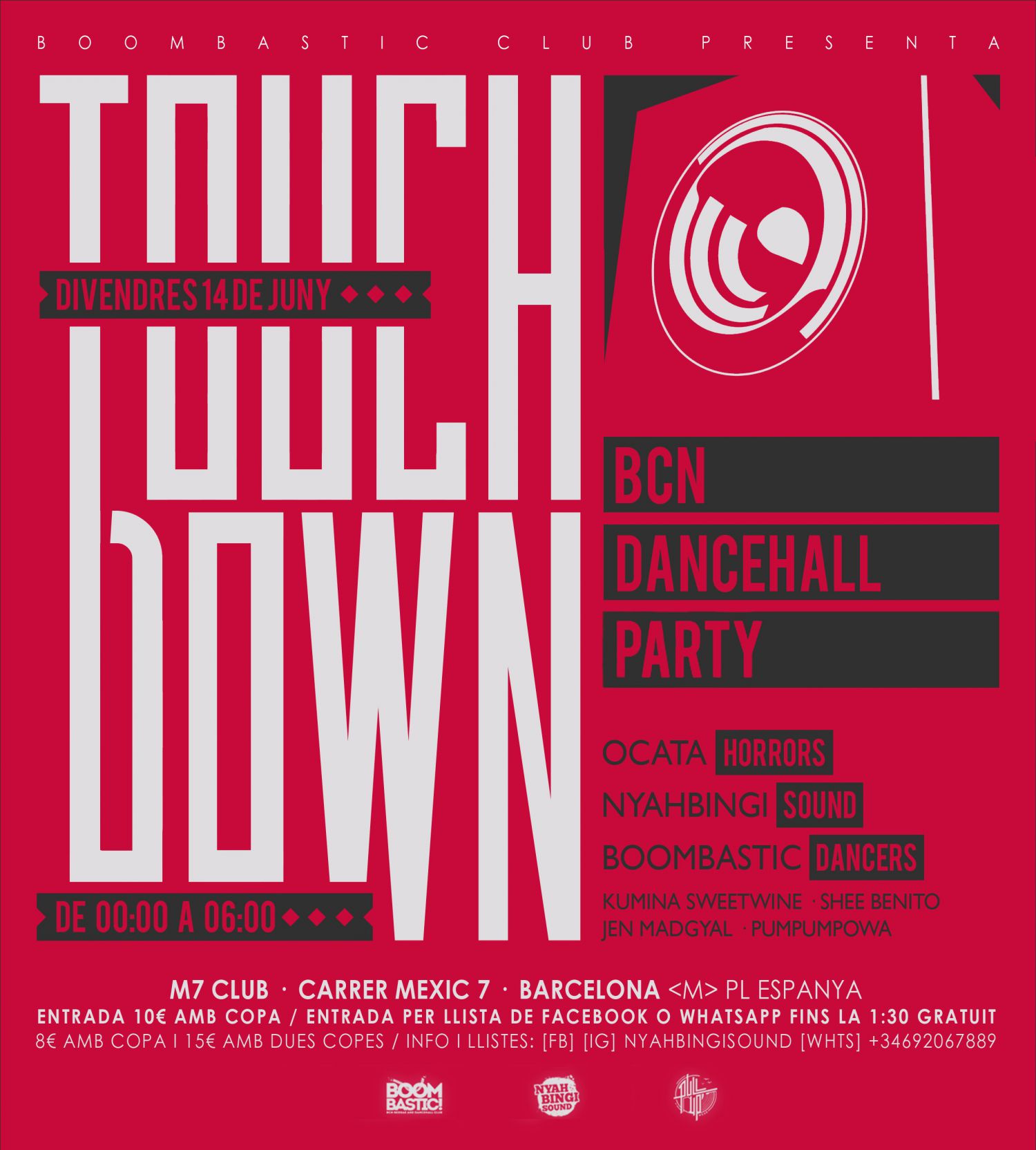 Propera TOUCH DOWN PARTY el divendres 14 de juny amb Ocata Horrors, Nyahbingi Sound i les nostres BoomBastic Dancers (Kumina ∞ SweetWine, Marina PumPumPowa, Jenny MadGyal i Shee Benito). Us esperem de 00h a 06h de la matinada! Preus d'entrada al final de la info! Make the date and don't be late!