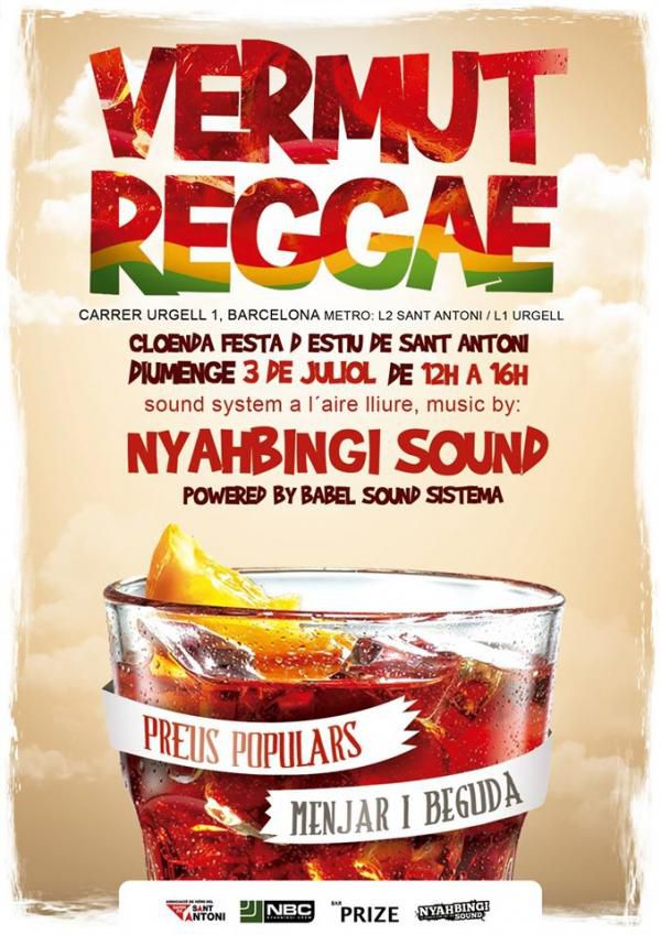 No et perdis el Vermut Reggae del proper 3 de juliol al barri de Sant Antoni de Barcelona! Show a càrrec de Nyahbingi Sound. Equip de so artesanal de Babel Sound Sistema. Menjar i begudes a preus populars. Tot gratuït i a l'aire lliure!