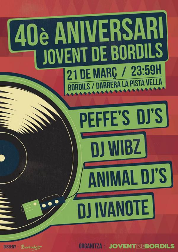 Aquest any tenim el plaer de poder-vos convidar el proper DISSABTE 21 DE MARÇ DE 2015 A LES 23:59H a la FESTA D’ANIVERSARI DELS 40 ANYS DEL JOVENT DE BORDILS!!