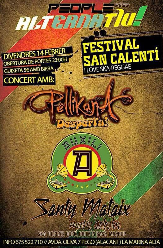 Els encarregats de donar calor a la nit seran el grup de mestissatge de la Foia de Castalla, Pellikana, i el grup de reggae ontinyentí, Auxili Ambdós grups presentant el seu segon treball d'estudi! Finalment el dj Santy Mataix tancarà la nit amb musiqueta de la bona!