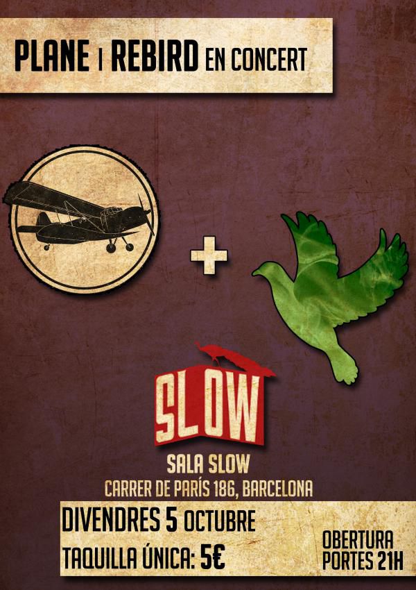 El proper divendres 5 d'octubre ReBird i Plane actuarem a la Sala SLOW de Barcelona (C/París,186)