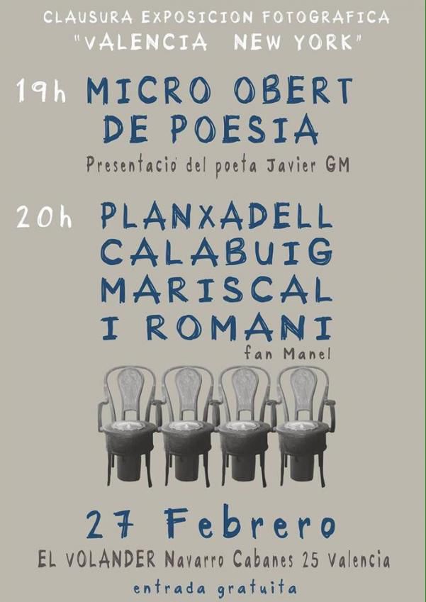 Pub El Volander, Poeta Navarro Cabanes, 25, València, 27/02/2015, 20:00hrs. Entrada gratuïta