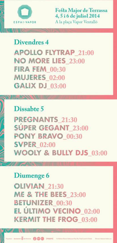 También Wooly and Bully Djs. Festival L'Espai Vapor 2014. Los días 4, 5 y 6 de julio. Dentro de las fiestas locales.