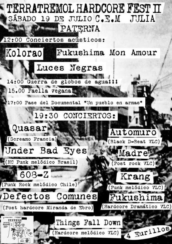 My lost soul, con el apoyo de Espai Obert, tenemos el placer de presentar lo que será la segunda edición de la segunda edición del Terratremol Hardcore fest. Esta año con cambio de ubicación... Nos trasladamos a Paterna, concretamente a la granja Julia, que está situada a escasos 200 metros de la estación de tren de paterna.