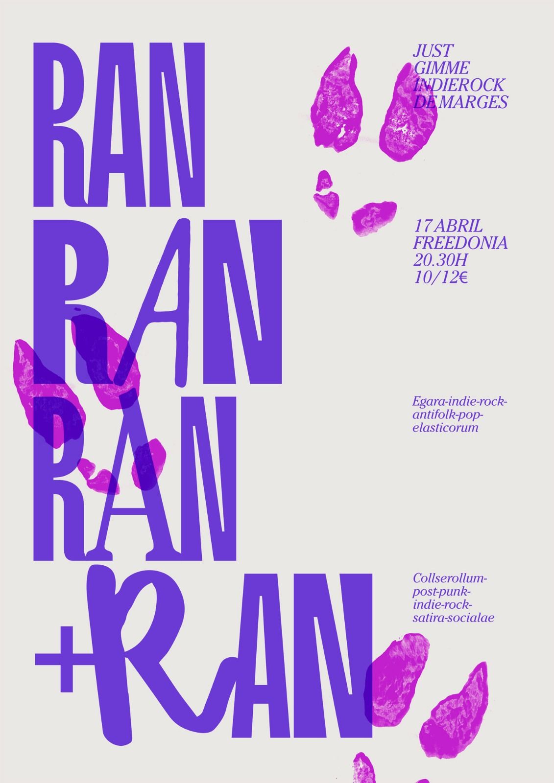 RAN neix al bosc de Collserola i es caracteritza per un so cru i intens que combina rock alternatiu, post-punk i indie-rock. Allunyats dels circuits comercials, creen cançons que barregen temes socials amb retrats aguts i irònics de la societat actual. No farem spoilers però els seus finals de concert acostumen a ser especials...