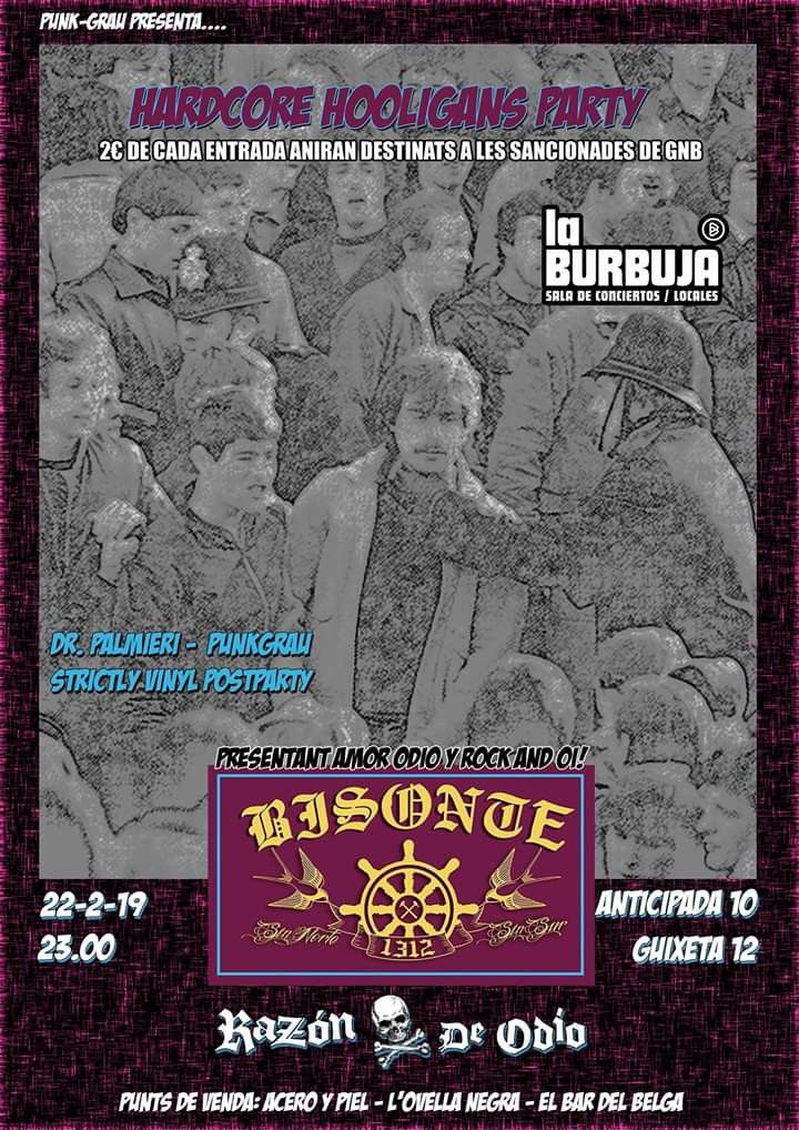 d'altra banda tindrem a la banda que va renaixer de les cendres d’Oi! the Arrase, amb el seu street punk Bisonte 1312 vindran a presentar el seu nou disc “Amor, odio y Rock and Oi!”.