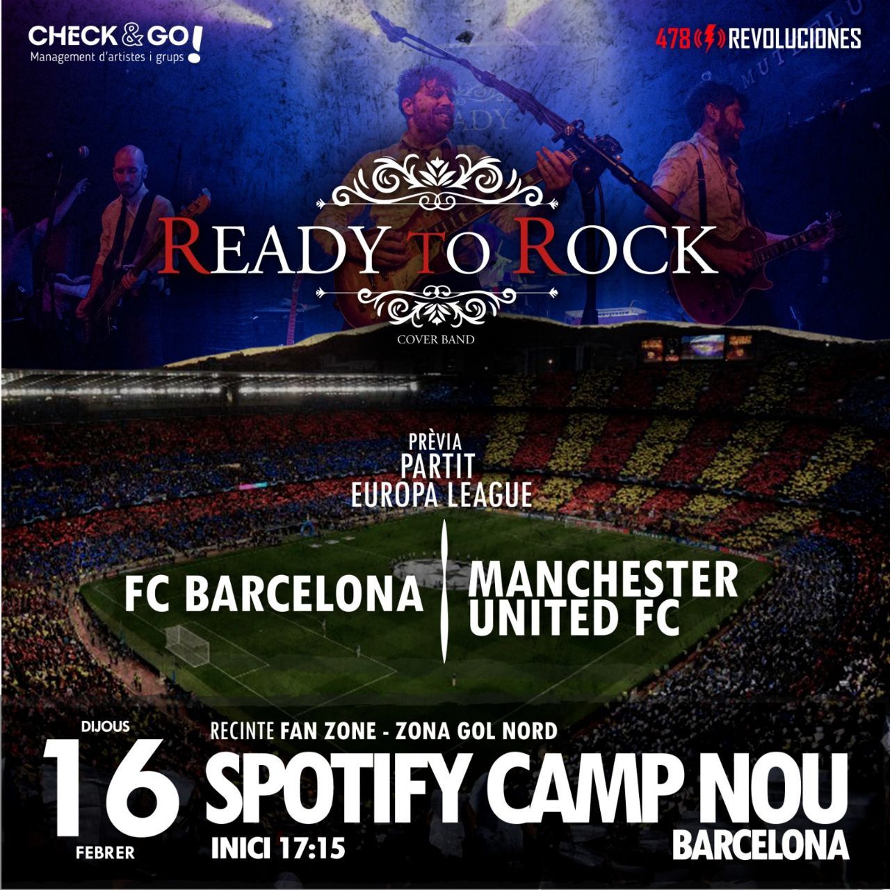 Ready to Rock estarem actuant a la fanzone de l’Spotify Camp Nou aquest dijous durant la prèvia del partit d’Europa League que enfrontarà el F.C. Barcelona i el Manchester United F.C.