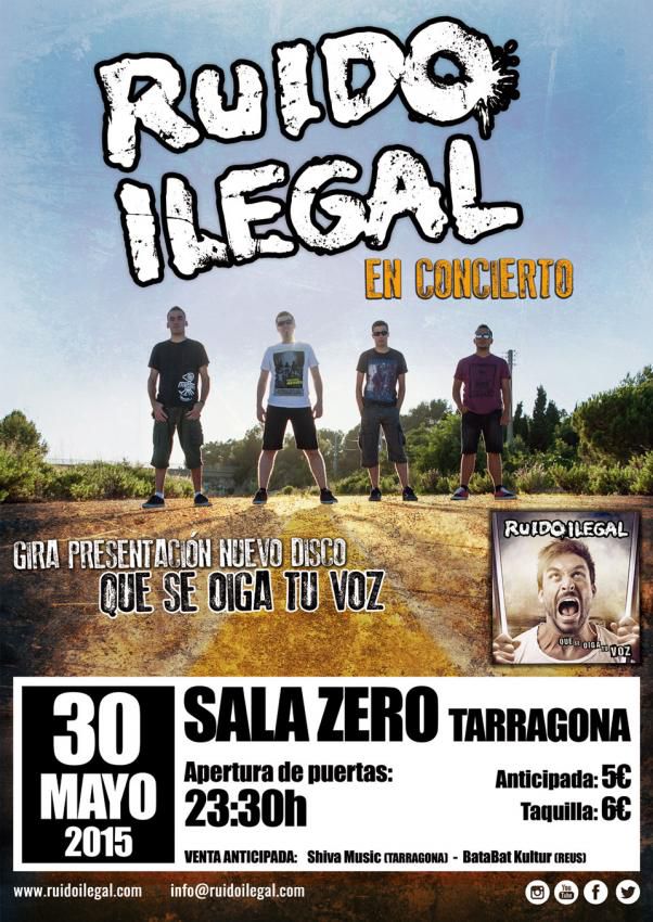 Primer concert del grup tarragoní Ruido Ilegal presentant el seu àlbum debut "Que se oiga tu voz" (Rock Cd Records 2015), amb el que inicien la gira.