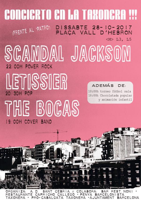 Música en directo en el barrio de Teixonera con motivo de la 33ª Semana Deportativa que organiza la A.D. Sant Cebrià. Con torneo de fútbol sala, y por la tarde en Pl. Vall d' Hebron, animación infantil y chocolatada con servicio de bar a precios populares. Colaboran Bar Noni, Restaurante Capricho Gallego, Penya Barcelonista Taxonera, Pro cabaltaga reis Taxonera y Ajuntament de Barcelona.