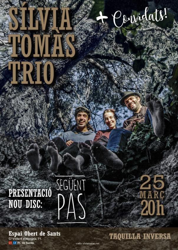 El dissabte 25, en format Trio, tenim la Presentació “oficial” del nou disc Següent pas, a Barcelona, a l’Espai Obert de Sants (c/ Violant d’Hongria, 71), espai compartit i mantingut per diversos col·lectius del barri. El concert serà a les 20h, començarà puntual. Serà un concert especial, llarg i amb col·laboracions de persones que han participat en cançons del disc: Ruth, Diego, Clara, Manu… L’entrada serà a taquilla inversa, això vol dir que després del concert cadascú podrà aportar el que pugui i vulgui, que anirà íntegrament a cobrir despeses i recolzar el projecte musical.