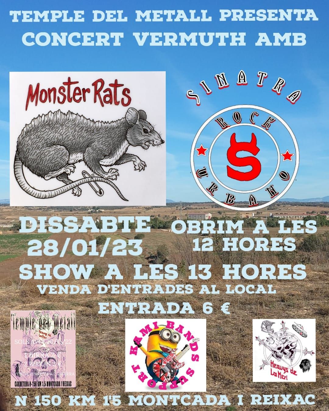 El temple del metall a Montcada i Reixac ens porta en concert vermut a la banda de rock urbà Sinatra, que ens faran trontollar els 5 sentits amb els seus temes propis i versions de grups nacionals com Barricada, Alarma,... entre d'altres.