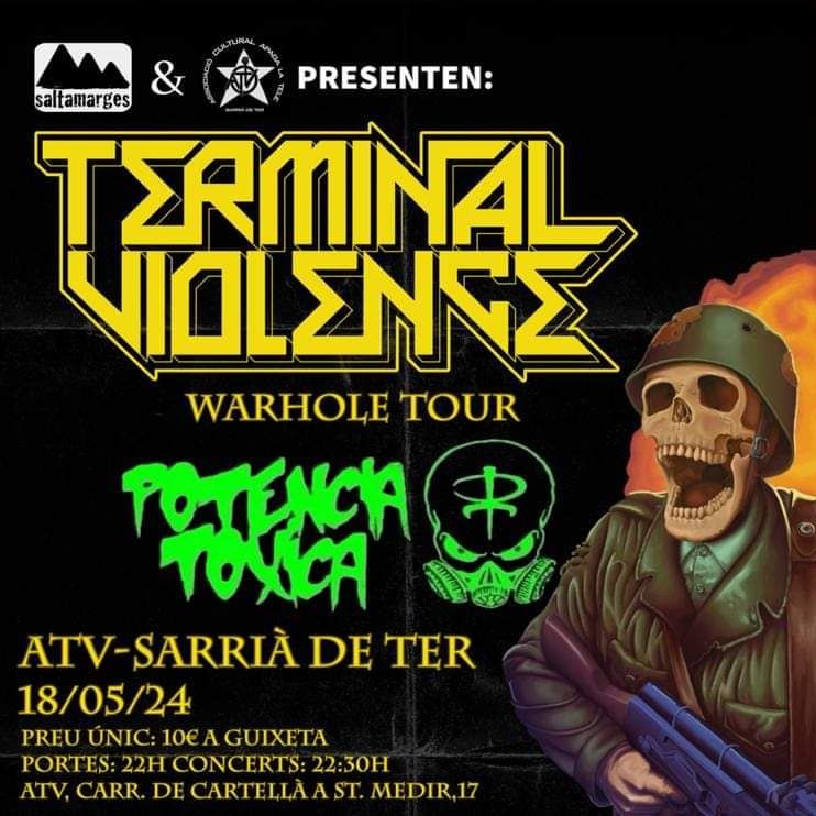Concierto de Terminal Violence junto a Potencia Toxica.Los valencianos aterrizan de nuevo en tierras Gerundenses para descargar su Thrash Metal rápido y demoledor.