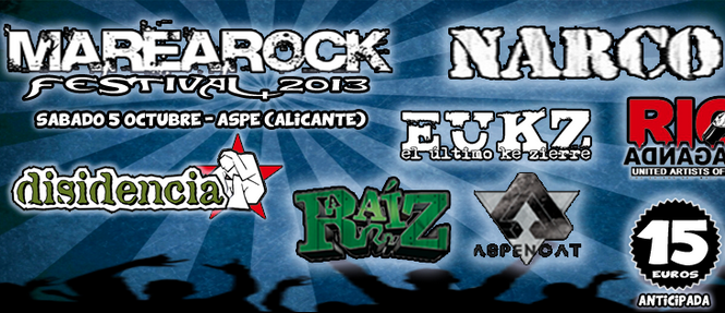 Torna un any més un dels festivals independents més importants de la província d'Alacant. Tot i els temps durs, el Marearock Festival segueix creixent any a any i per aquesta vuitena edició estrenen localitat. El dissabte 5 d'octubre grans bandes consagrades del panorama estatal estaran oferint tot el seu repertori a l'Annex del Pavelló Municipal d'Asp (Alacant), en un recinte asfaltat amb millors accessos, zona d'acampada al costat dels concerts, servei de dutxes, bar, piscina dins del pavelló, i alguns luxes més.El cartell d'aquest any l'encapçala el grup sevillà Narco, que repeteix després de ser un dels grups més ben valorats de la passada edició del festival, amb ells estaran grups com els valencians l'Último ke Zierre. Els de Castelló estaran presentant els temes del seu nou disc "La rutina del Miedo".